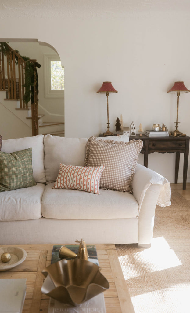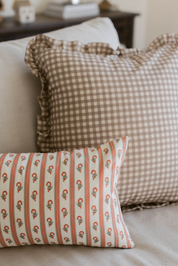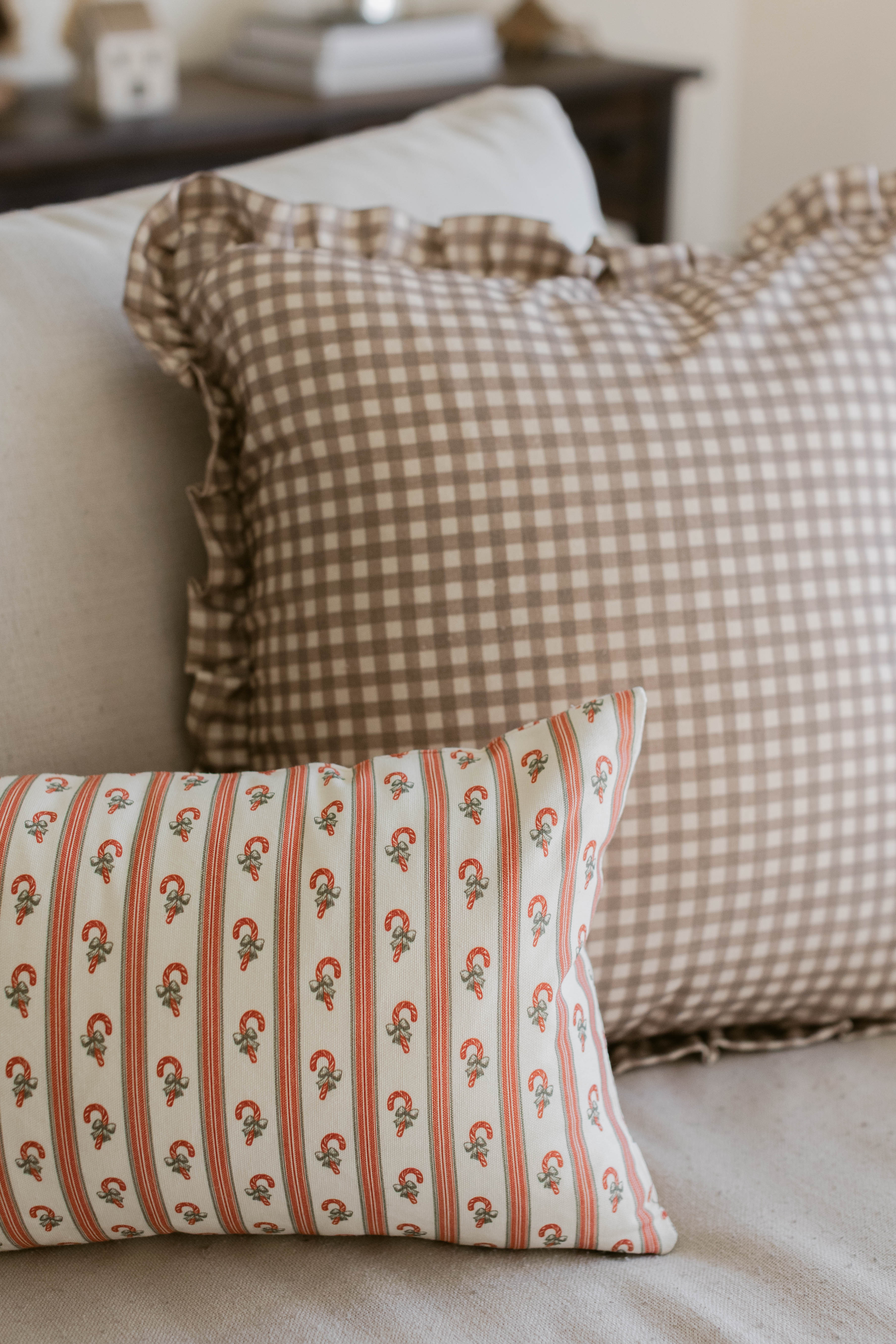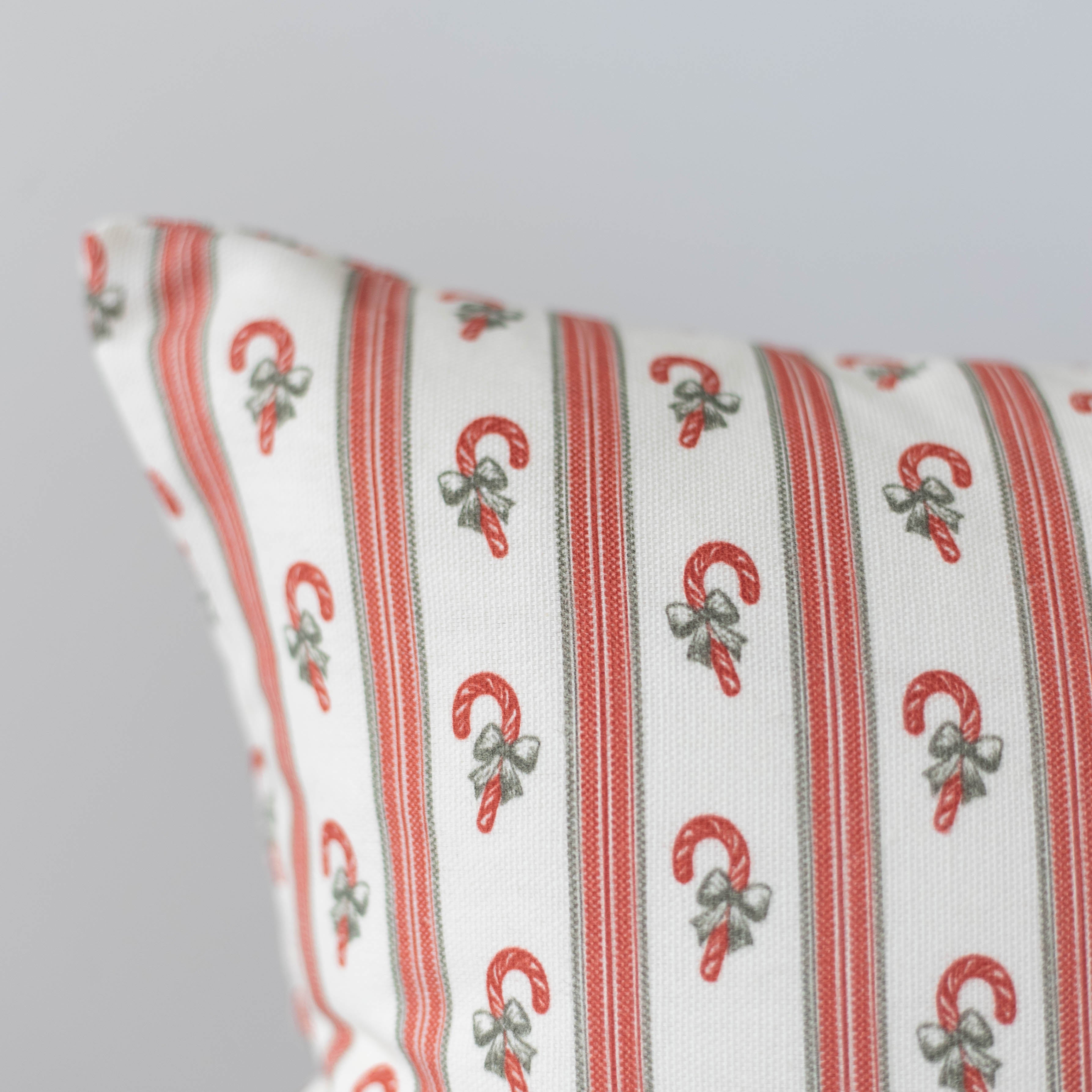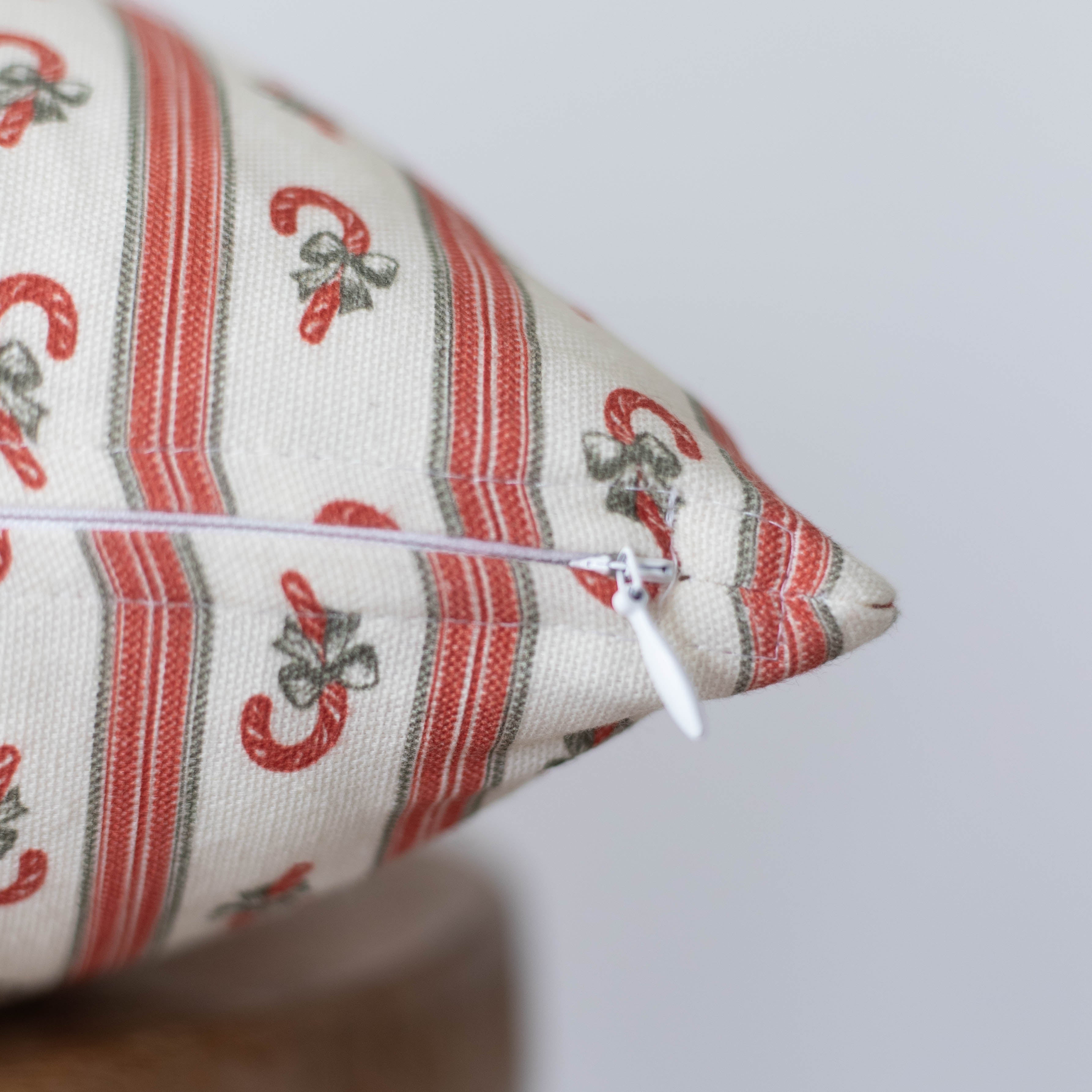 Cheerful red stripes and tiny floral motifs bring a vintage holiday charm to your space — perfect for layering all season long.
