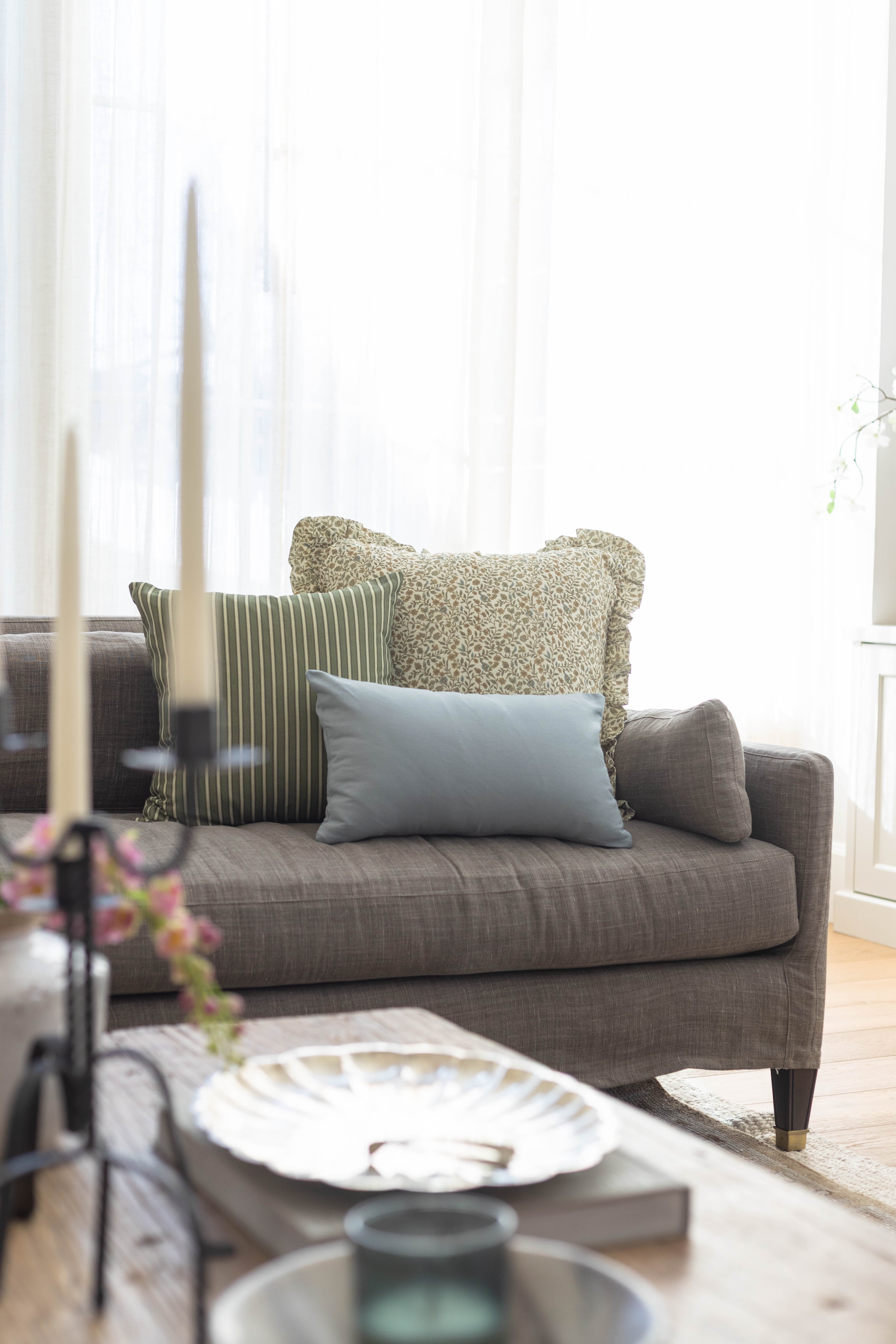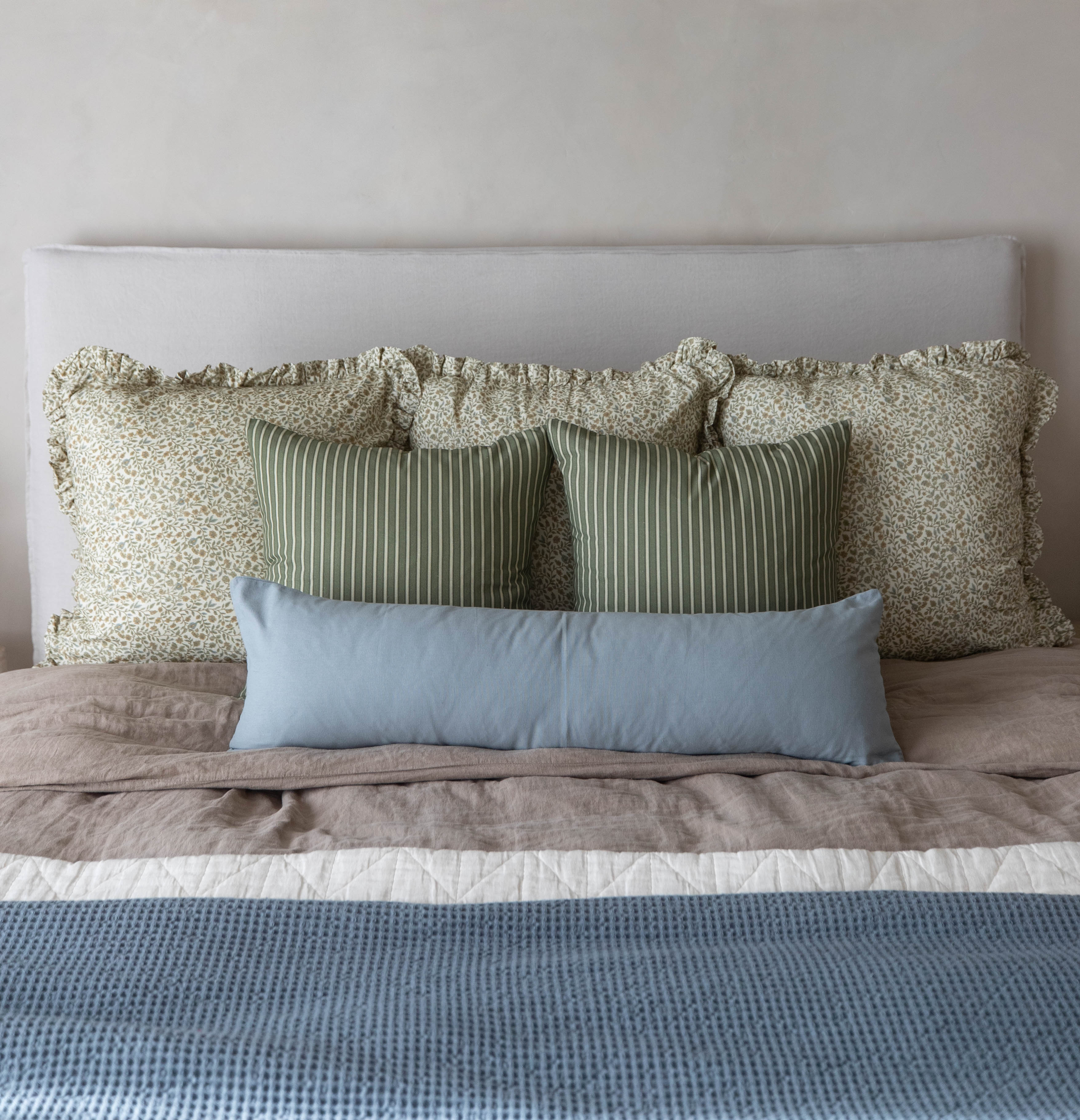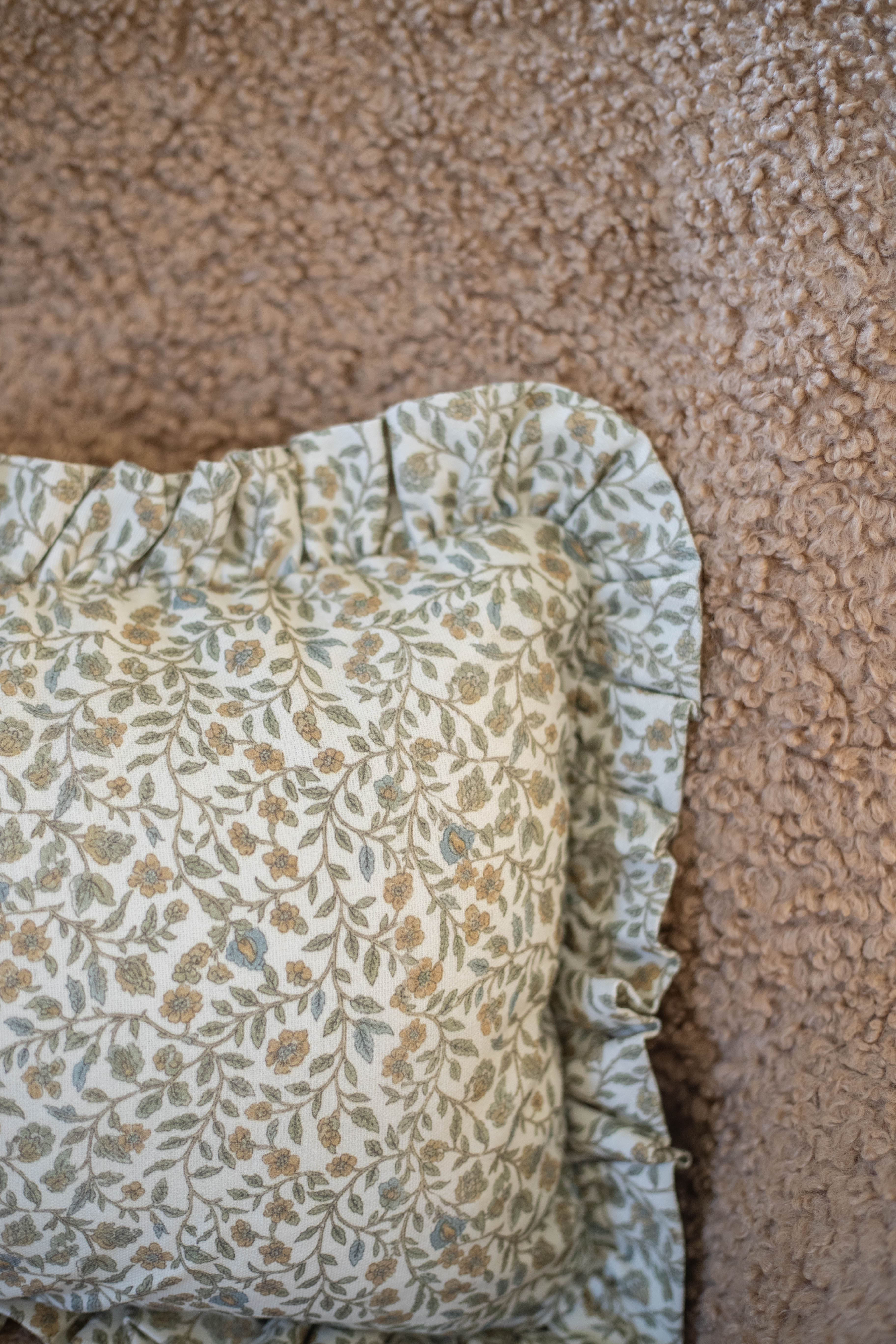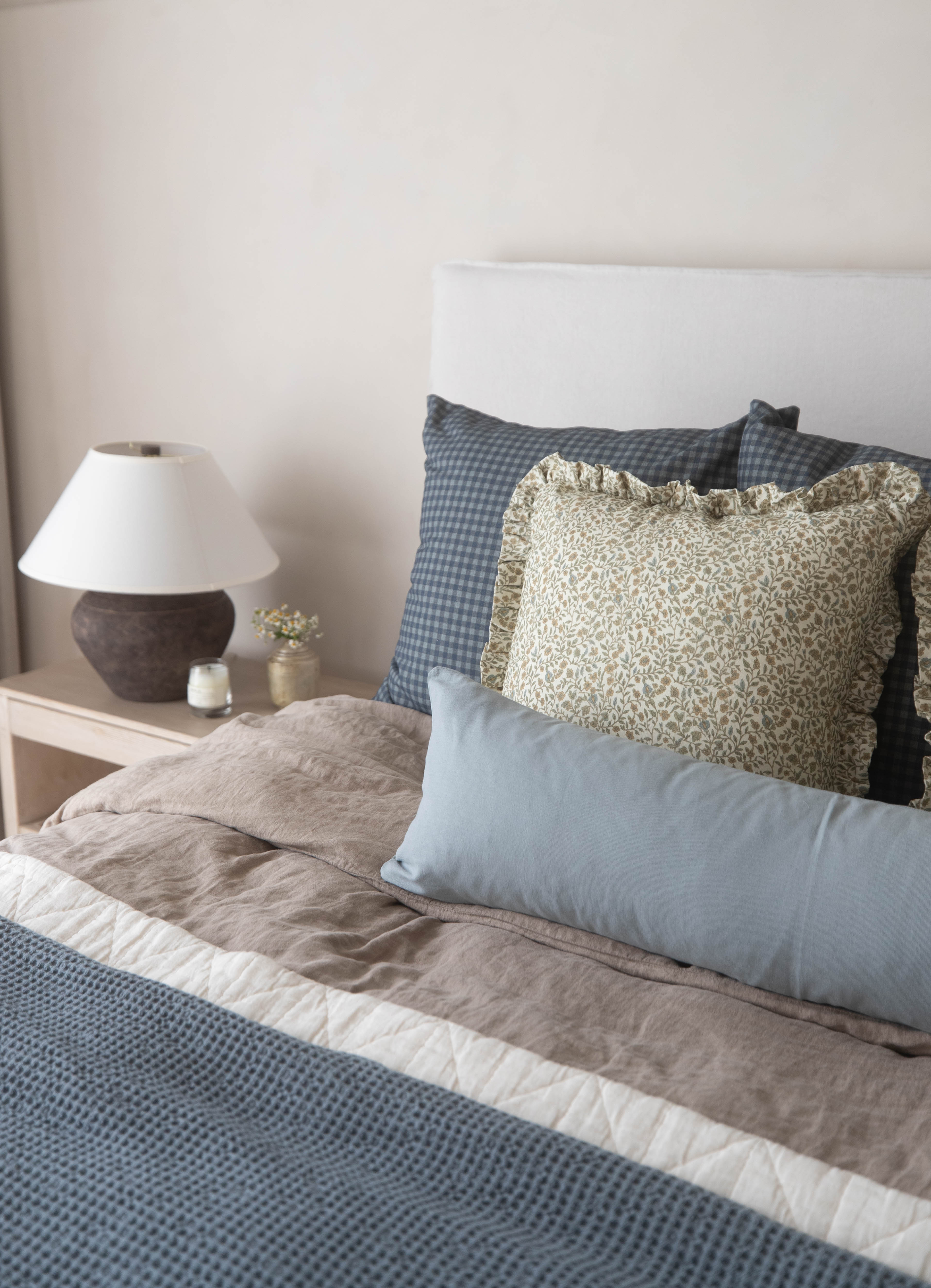 The Meadow Ruffle Pillow pairs a delicate, vintage-inspired floral with a soft ruffled edge, bringing an airy, cottage-garden feel to your sofa, bed, or reading nook. Its warm cream base and soft touches of sage, blue, and golden floral tones feel fresh and inviting—perfect for spring layering. Style it with light stripes, ginghams, and crisp neutrals for a space that feels collected, bright, and effortlessly lived in.