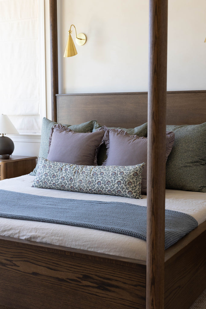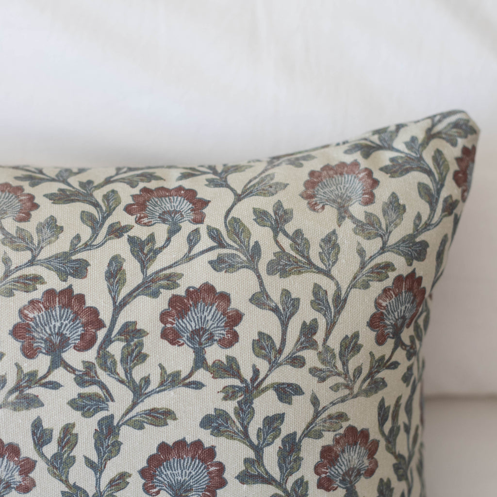 This hand-block floral brings an heirloom charm to any sofa or bed. With muted blues, warm reds, and delicate detailing, this pillow layers beautifully for a collected, lived-in look