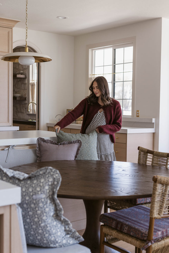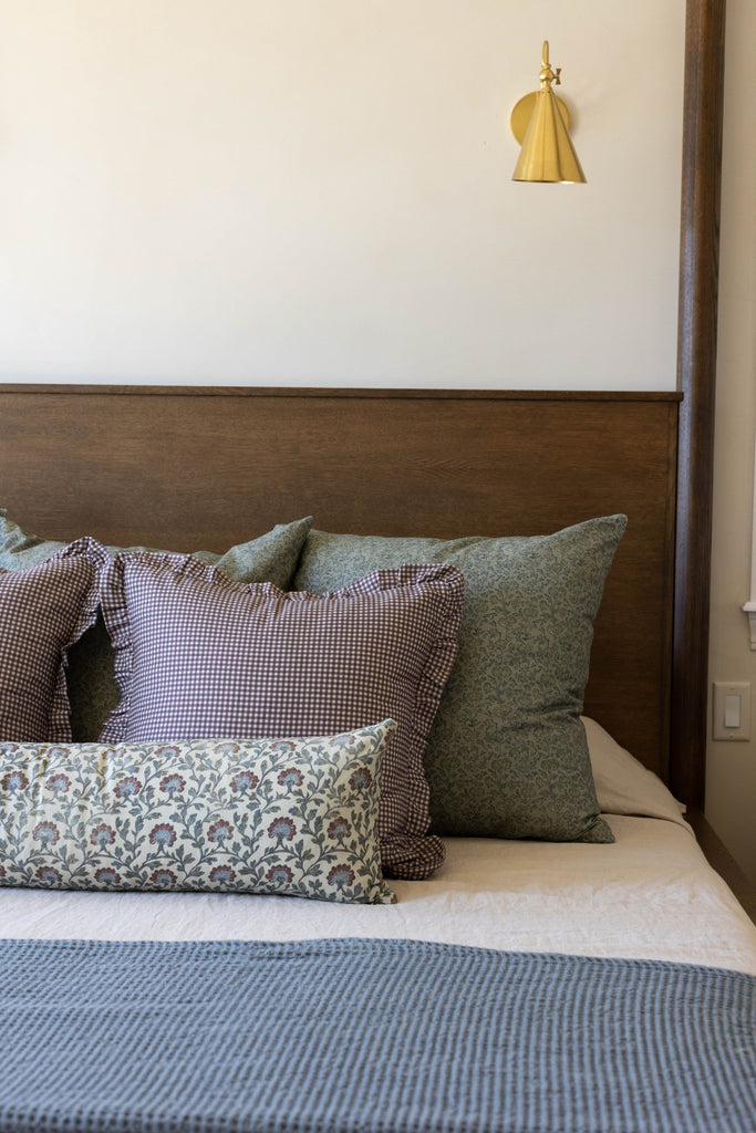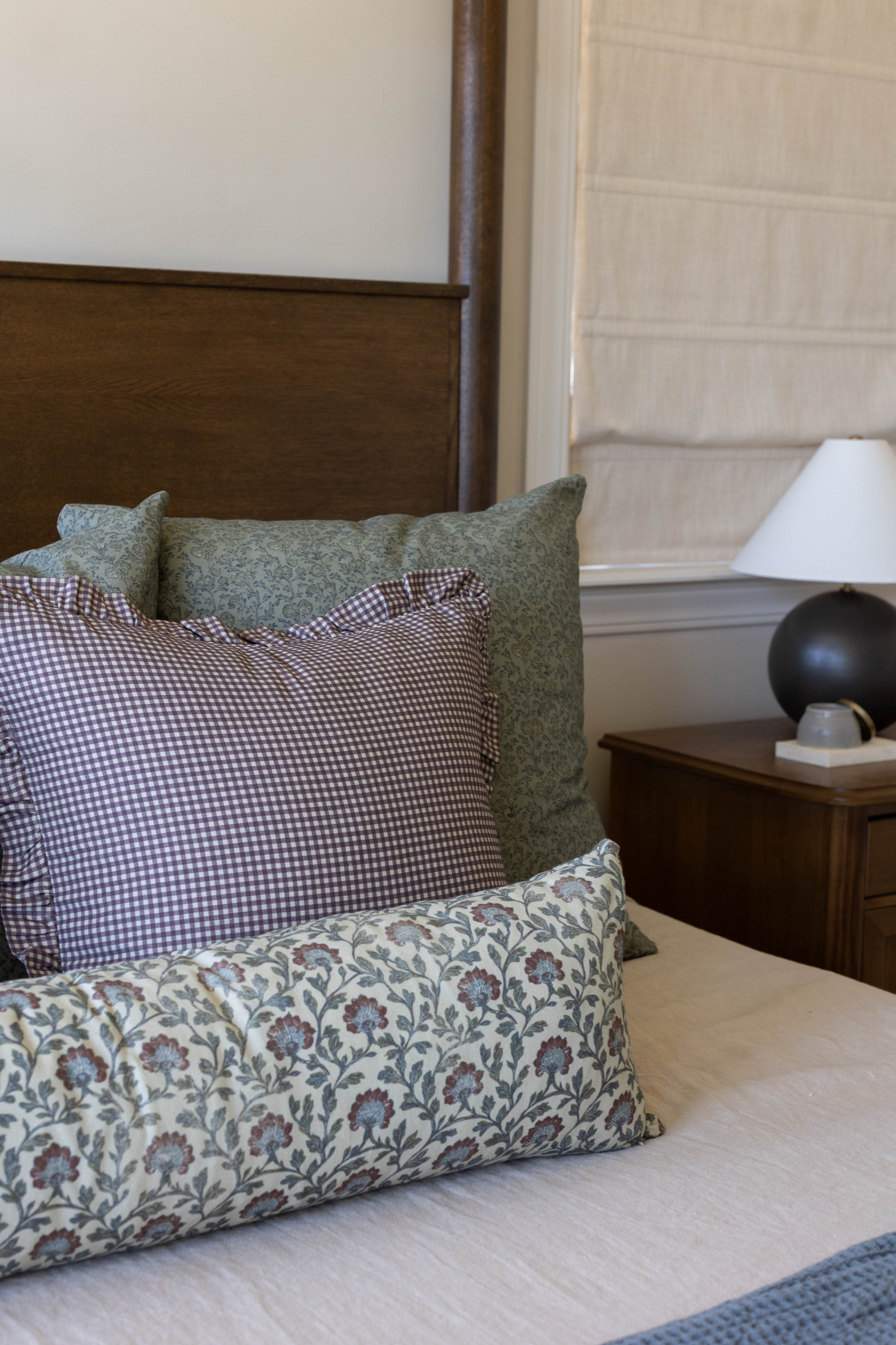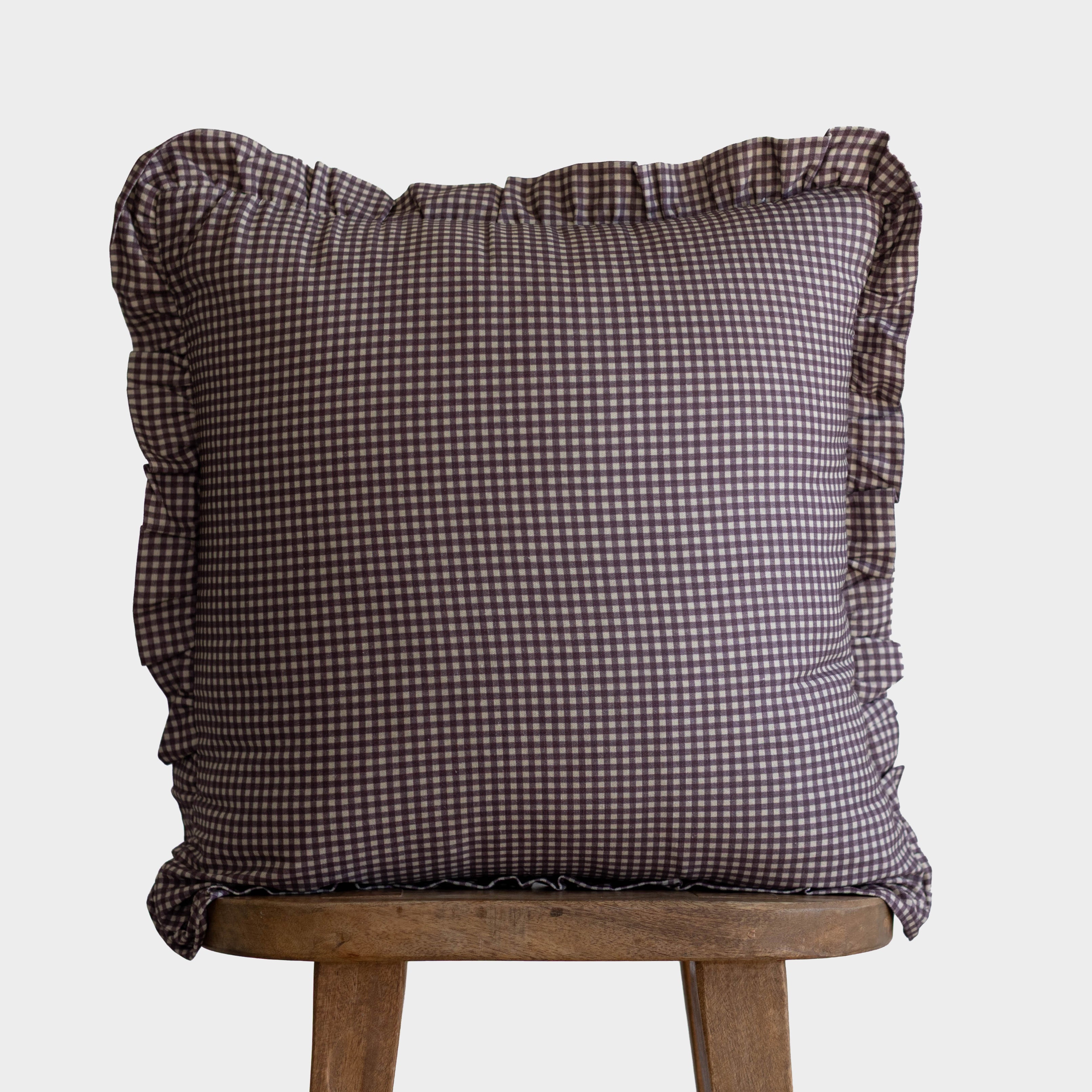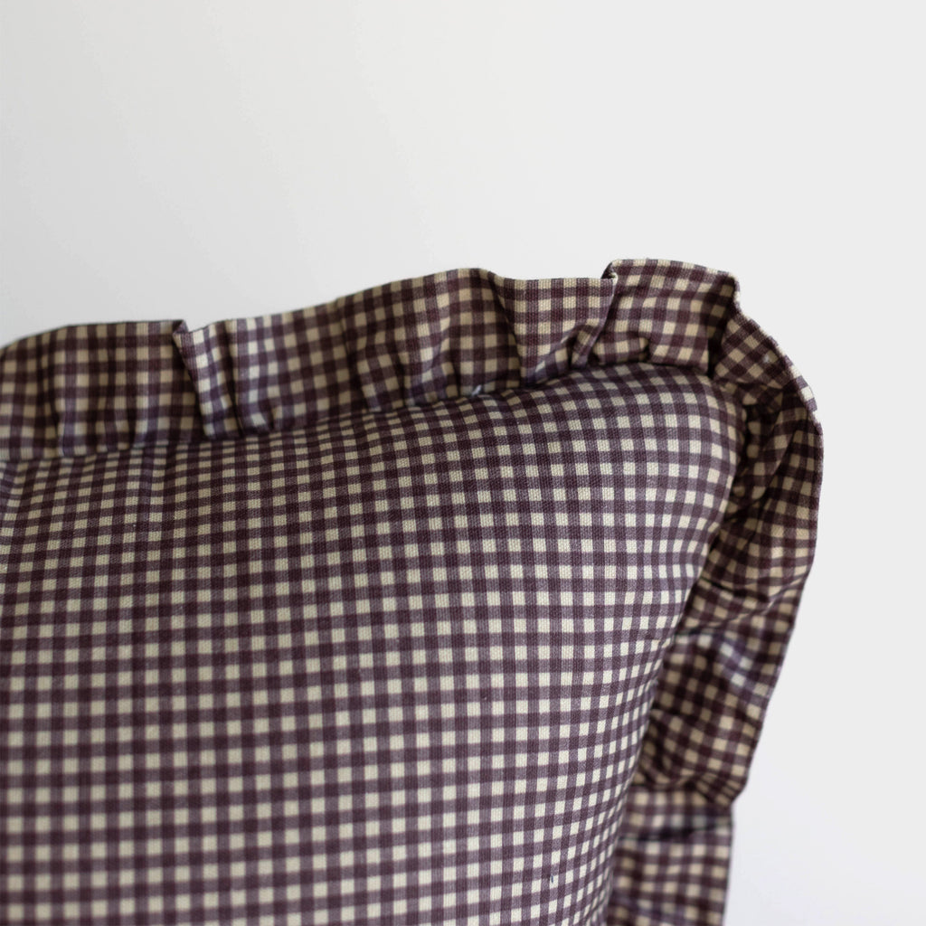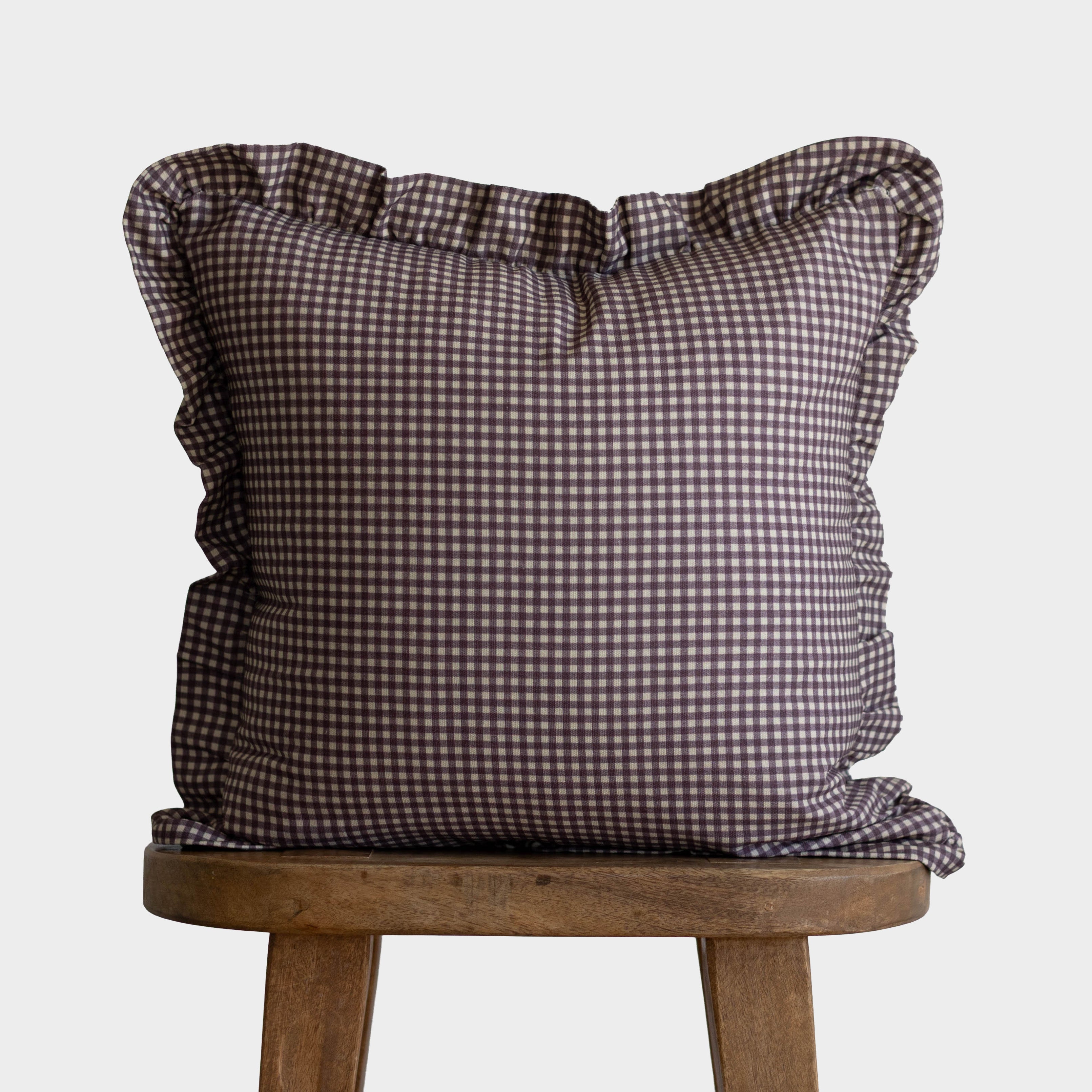 The Plum Mini Gingham Ruffle combines a timeless check pattern in rich plum with a soft ruffled edge, adding a hint of playful charm to your sofa, bed, or reading nook. Perfect for layering with florals, solids, and other patterns for a cozy, collected look.