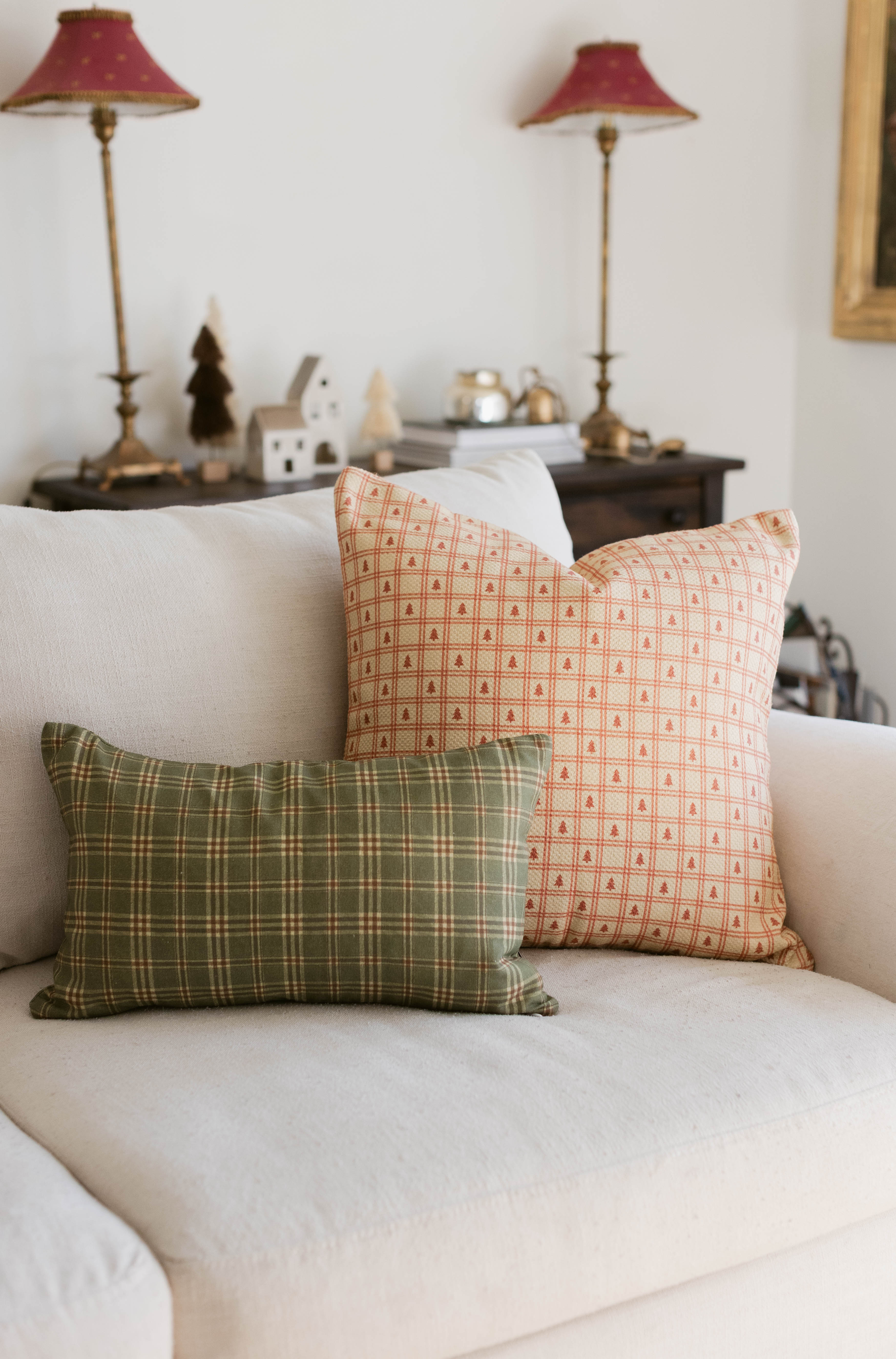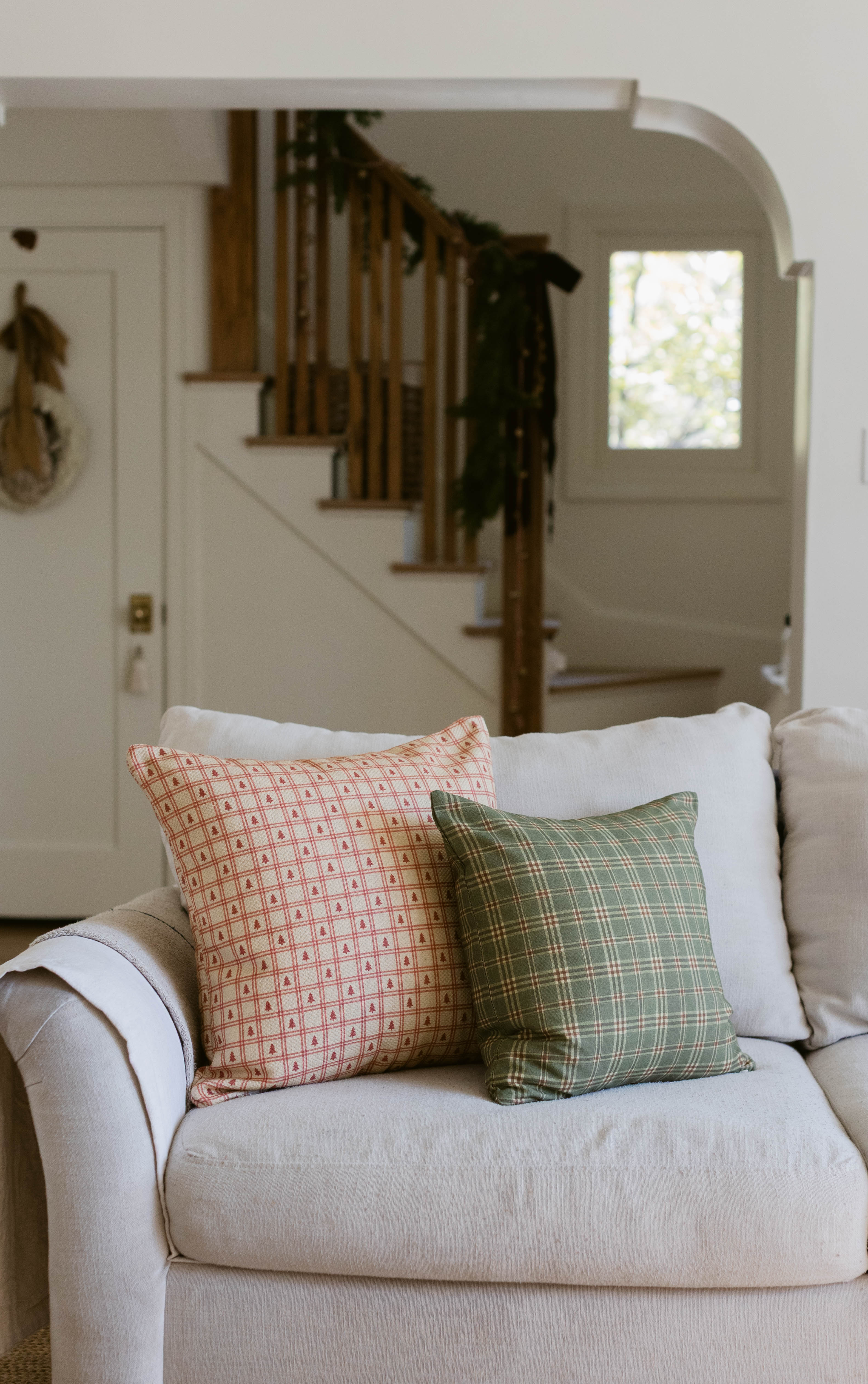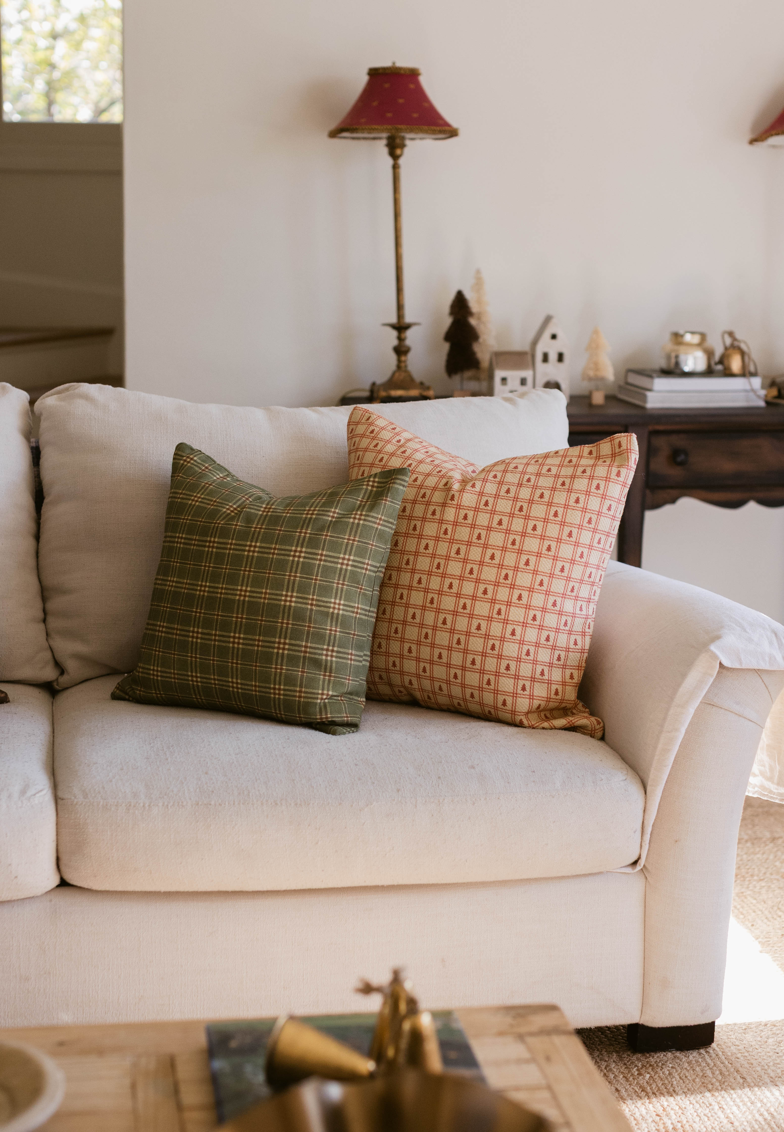 A warm cream base with a red check and tiny tree motif — Redford brings a cozy, nostalgic touch to your holiday layers.