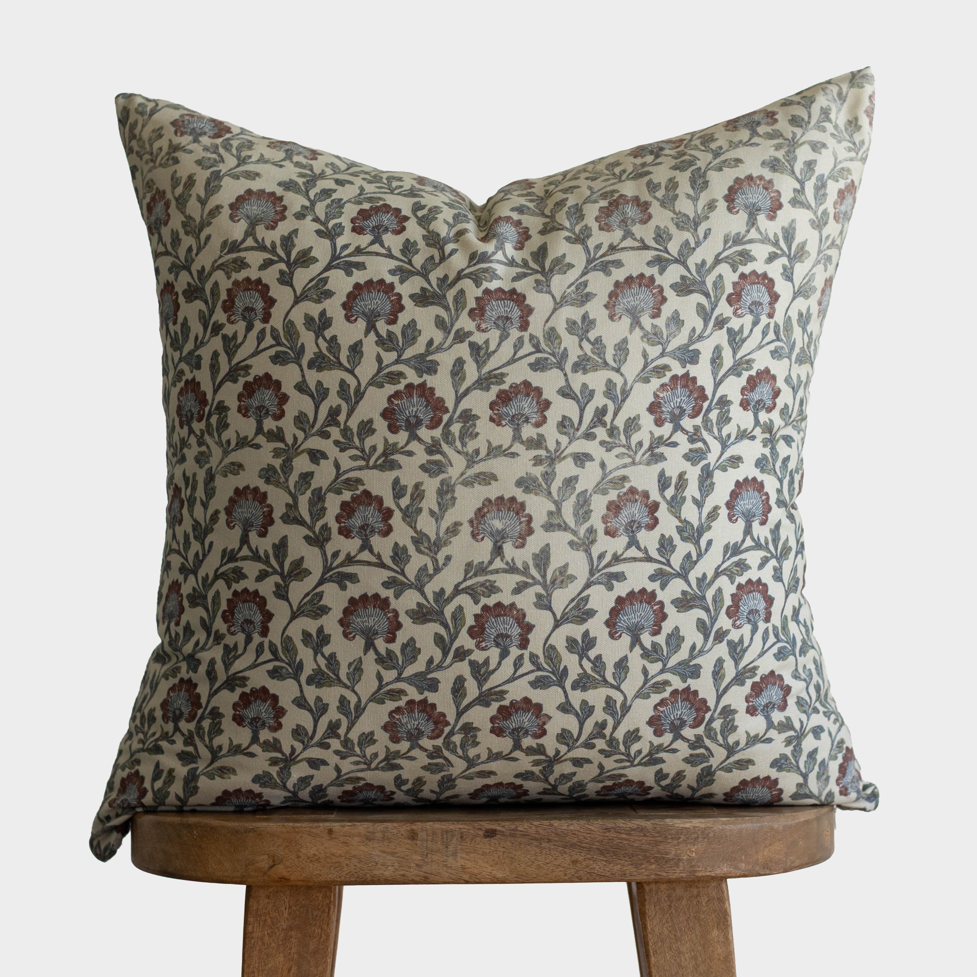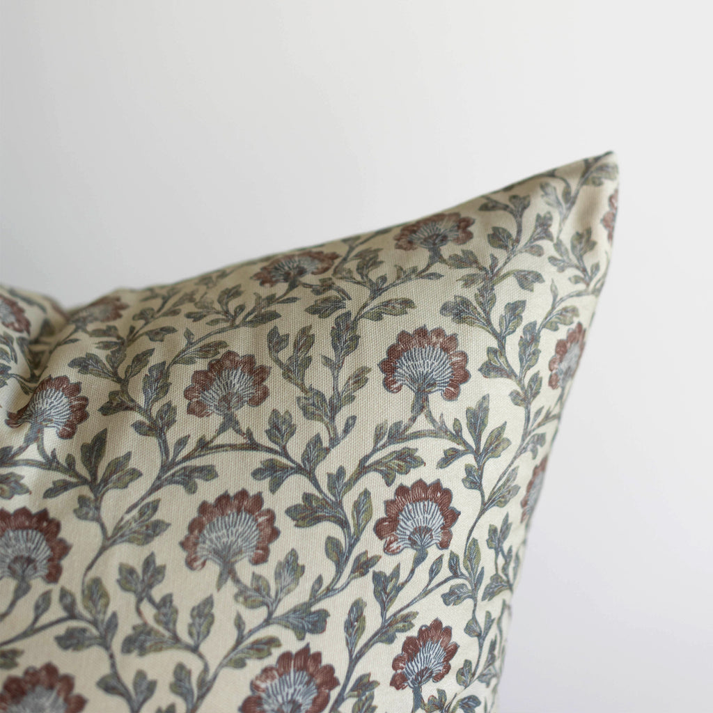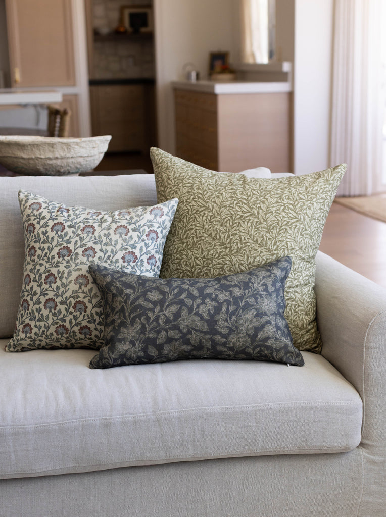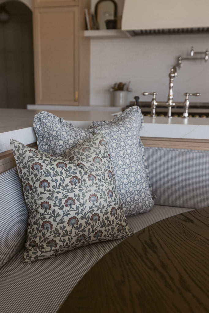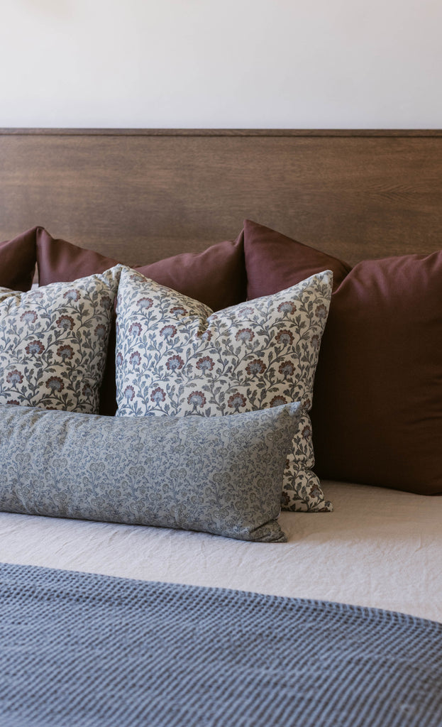 This hand-block floral brings an heirloom charm to any sofa or bed. With muted blues, warm reds, and delicate detailing, this pillow layers beautifully for a collected, lived-in look