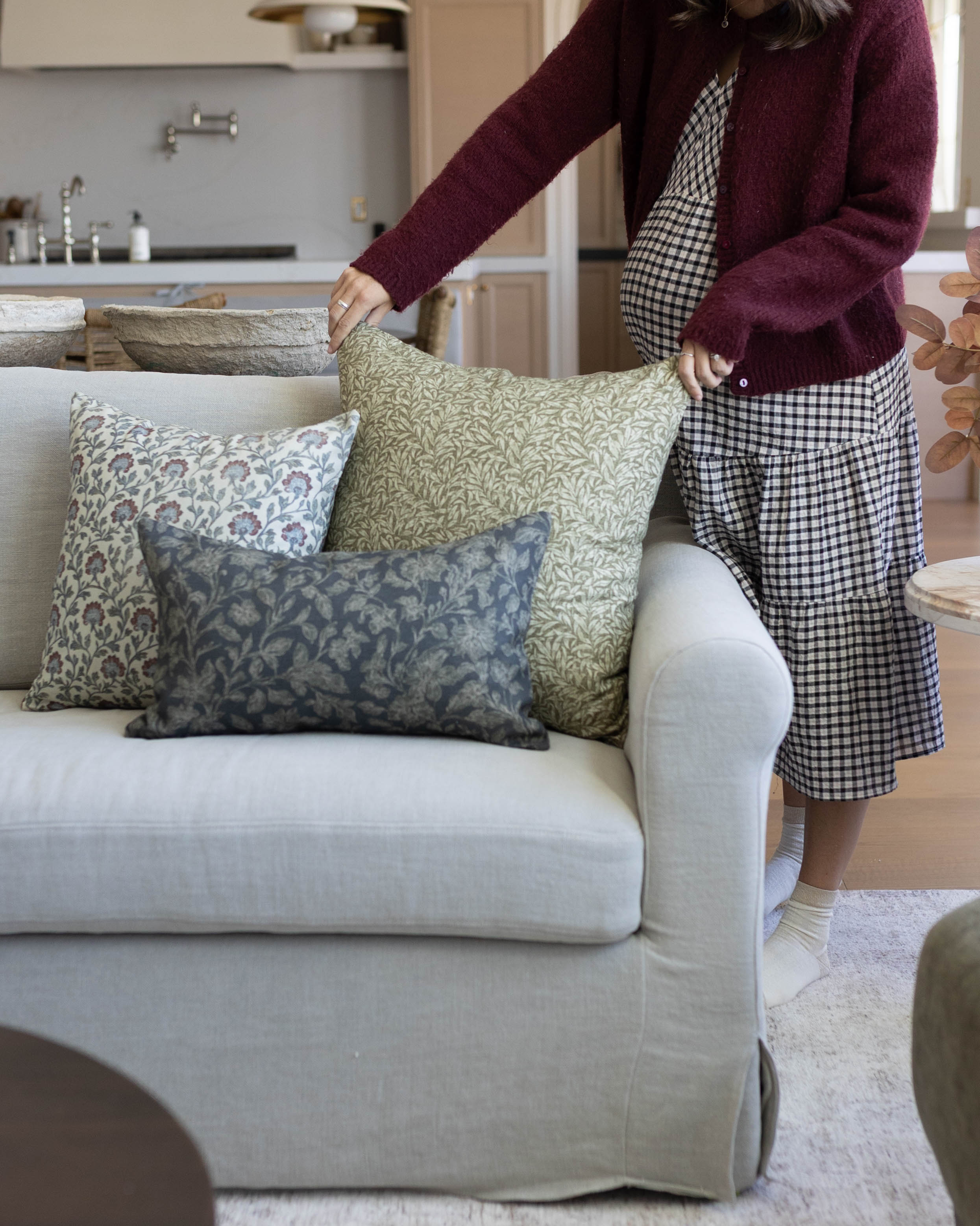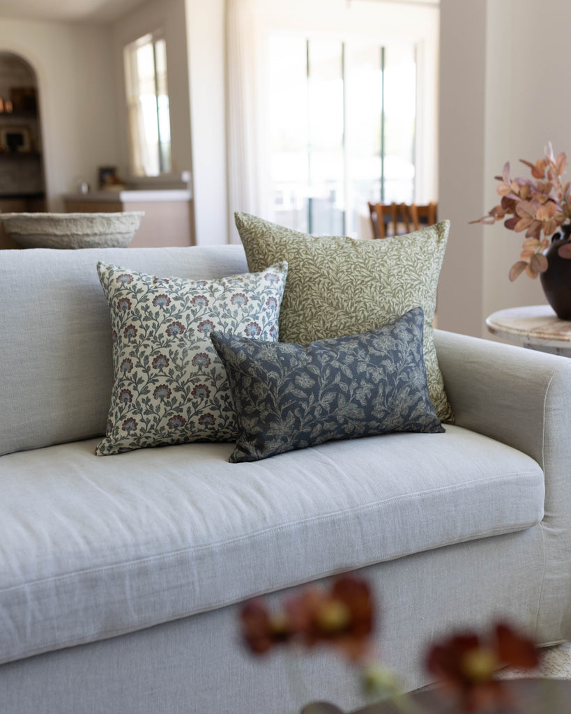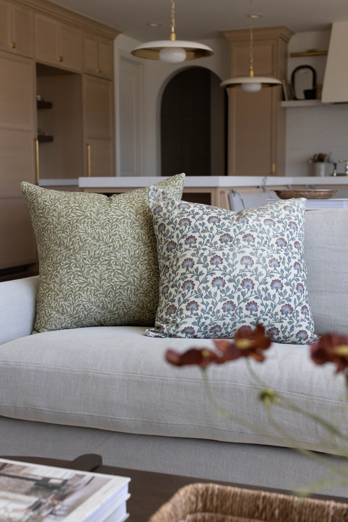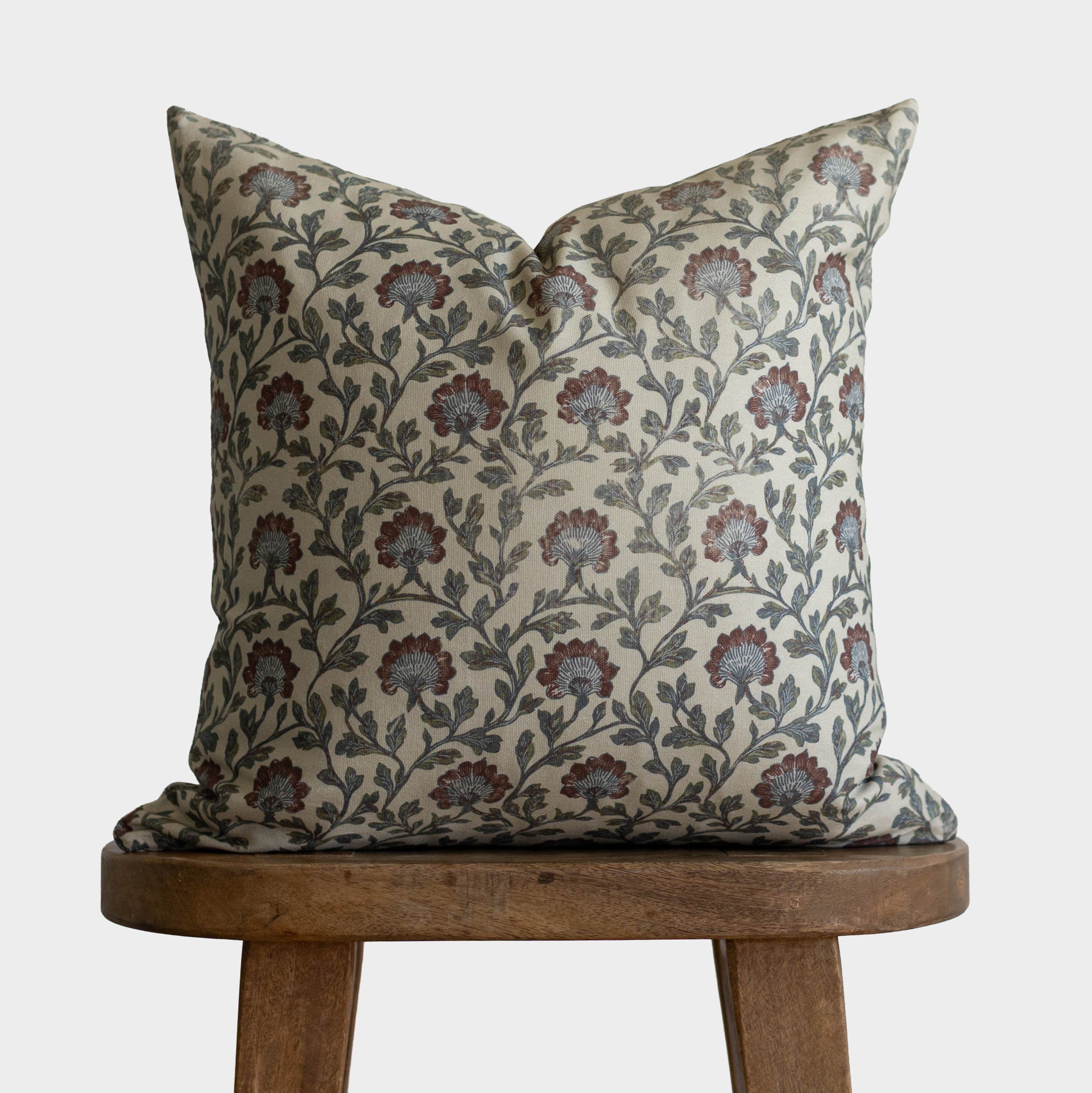 This hand-block floral brings an heirloom charm to any sofa or bed. With muted blues, warm reds, and delicate detailing, this pillow layers beautifully for a collected, lived-in look